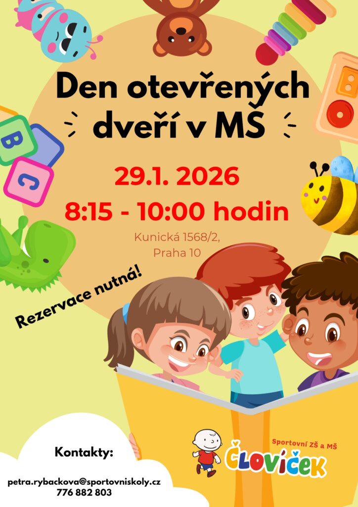 Srdečně Vás zveme na Den otevřených dveří v MŠ, který se uskuteční 29.1.2026 od 8:15 – 10:00 hod. v prostorách naší školy!